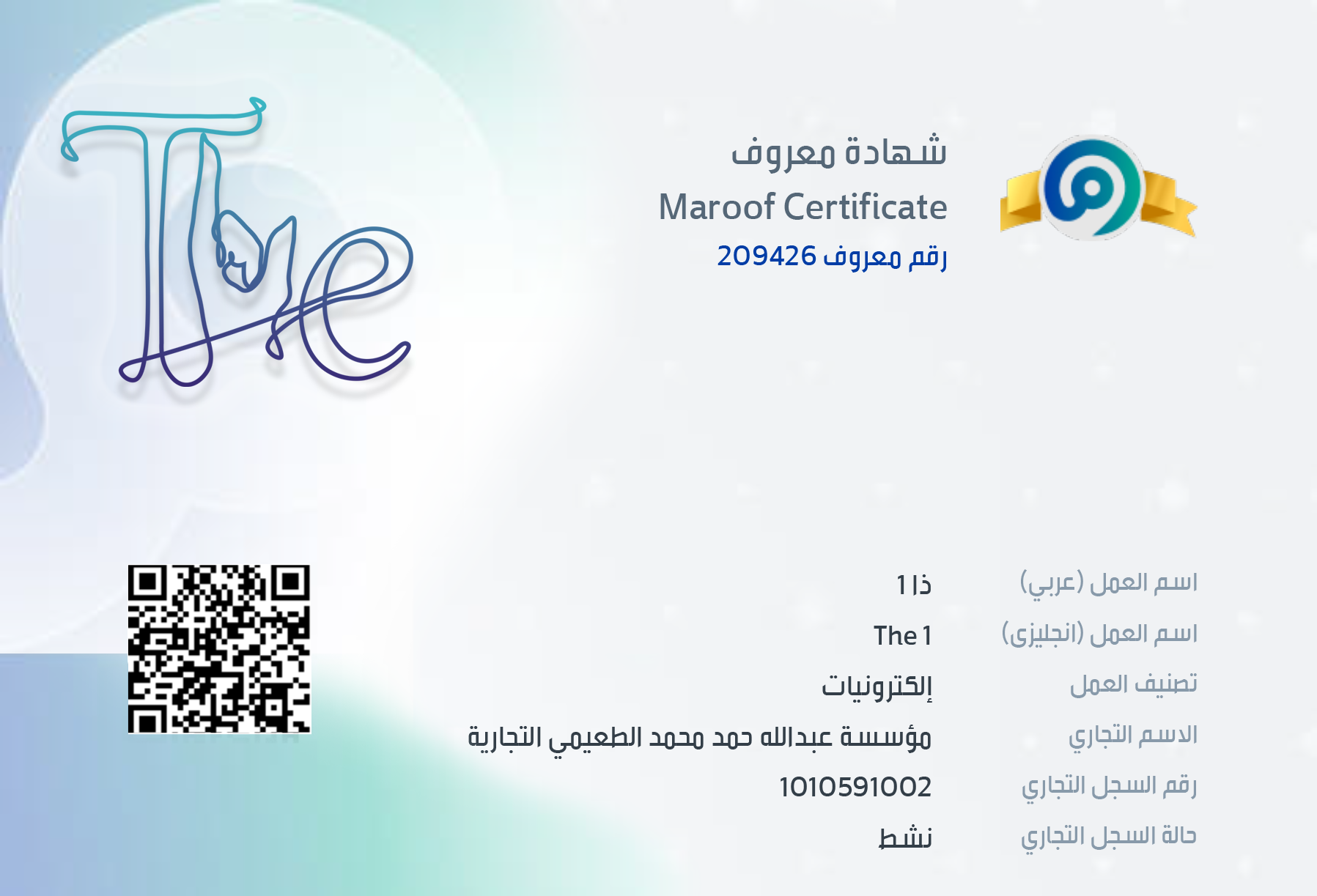 شهادة معروف الخاصة بمتجر ذا 1 سعيدون جدا لزيارتكم موقعنا والتصفح من خلاله