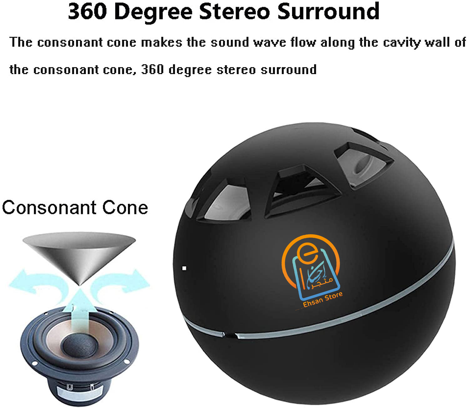 الكرة التي بالمنتصف عبارة عن سبيكر عالي جدا يعمل عن طريق البلوتوث